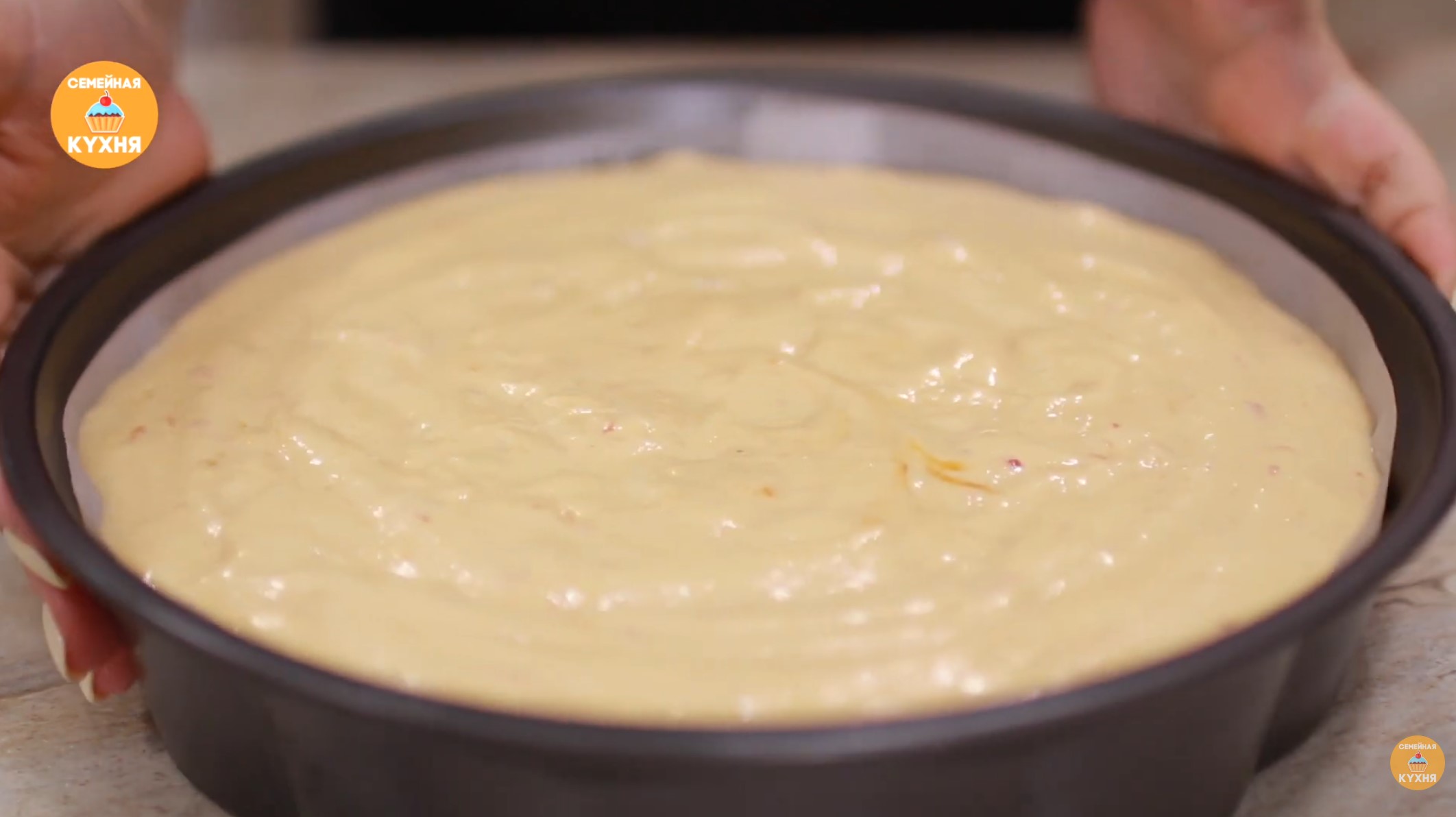 Выпекание • Подготовьте глубокую форму (размером примерно 20х30 см или диаметром 25 см). Застелите её пергаментом и смажьте. • Вылейте тесто в форму и отправьте в разогретую духовку на 30–40 минут.