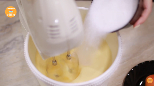 Приготовление теста • В чашу миксера разбейте яйца и добавьте щепотку соли. Взбивайте на средних оборотах. • Когда яйца взбиты, постепенно всыпайте сахар, увеличив обороты. Продолжайте взбивать, пока масса не побелеет, не увеличится в объеме, а сахар полностью не растворится.