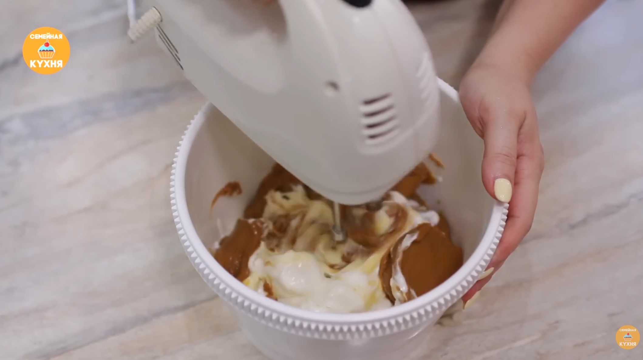 Приготовление крема 1. В глубокой миске соедините сыры (филадельфию и маскарпоне), йогурт (или сметану) и оставшиеся 1,5 банки вареной сгущенки. 2. Тщательно перемешайте массу миксером до однородного состояния.