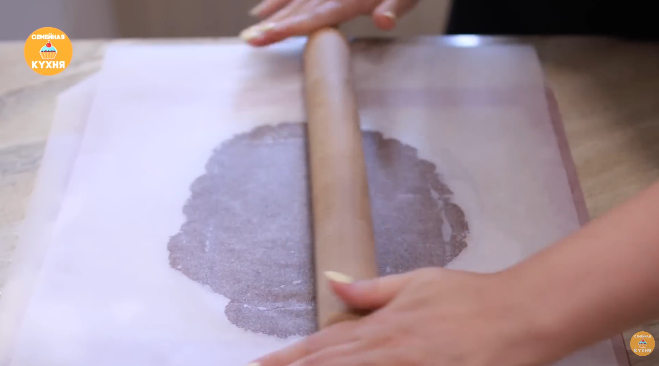 Выпекание коржей 1. Раскатка: Доставайте по одному шарику из холодильника и раскатывайте очень тонко. Источники рекомендуют делать это между двумя листами пергамента, чтобы тесто не прилипало. 2. Формовка: Вырежьте круг диаметром 20 см (можно использовать крышку или форму). Наколите каждый корж вилкой, чтобы он не вздувался при выпечке.