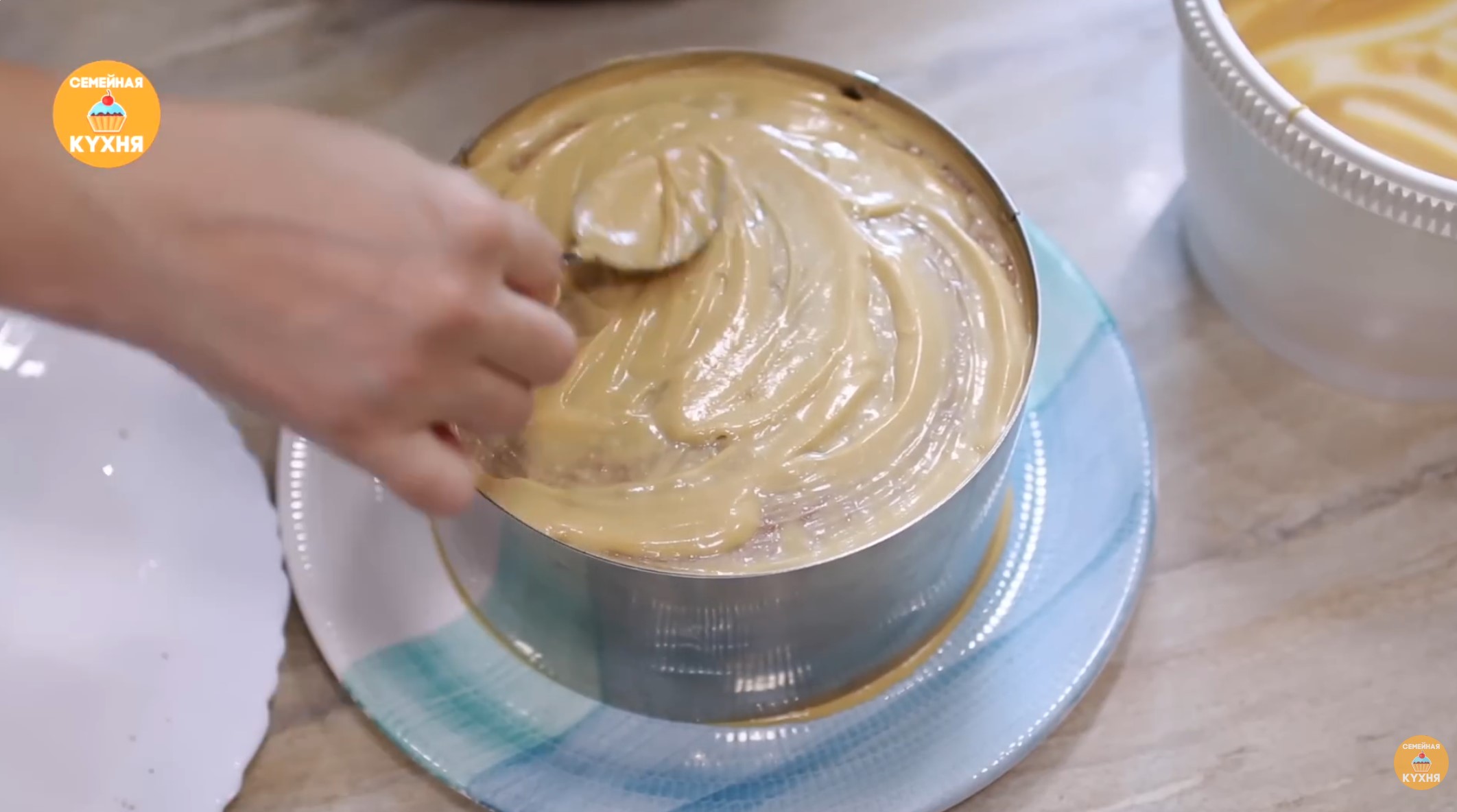 Сборка торта 1. Смажьте блюдо небольшим количеством крема, чтобы торт не скользил. 2. Для ровной формы рекомендуется собирать торт в кольце. На каждый корж выкладывайте примерно две столовых ложки крема. 3. Слегка придавливайте коржи при сборке для лучшего распределения крема. 4. Важно: Оставьте пару ложек крема для финального выравнивания краев.