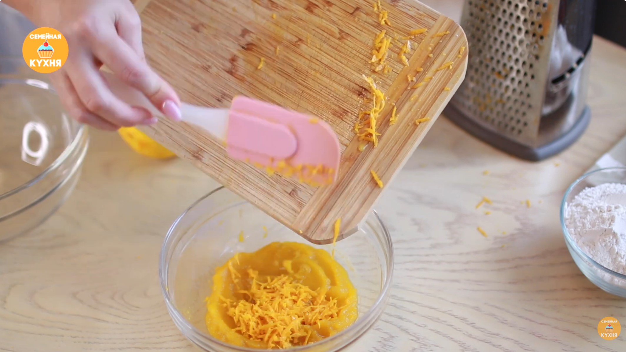 Подготовка тыквы Заранее запеченную тыкву необходимо превратить в пюре с помощью блендера или перетереть через сито. Если в процессе выделилась лишняя жидкость, её нужно обязательно слить, чтобы пюре получилось густым. С апельсина снимите тонкий оранжевый слой цедры, добавьте её в тыквенное пюре и перемешайте.