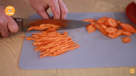 Подготовка овощной основы. Нарежьте морковь и редьку тонкой соломкой (можно использовать терку для корейской моркови).