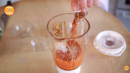 Добавьте в смесь рыбный и устричный соусы, паприку, сахар и хлопья перца чили. Еще раз всё тщательно взбейте в блендере.