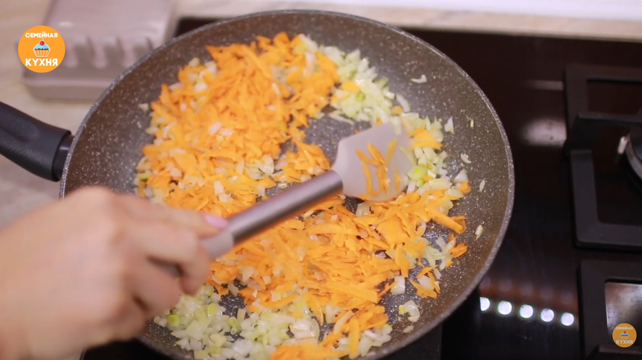 Мелко нарежьте лук и чеснок. Морковь натрите на крупной тёрке. Обжарьте лук и чеснок на сковороде с растительным маслом, затем добавьте к ним морковь и слегка обжарьте всё вместе.