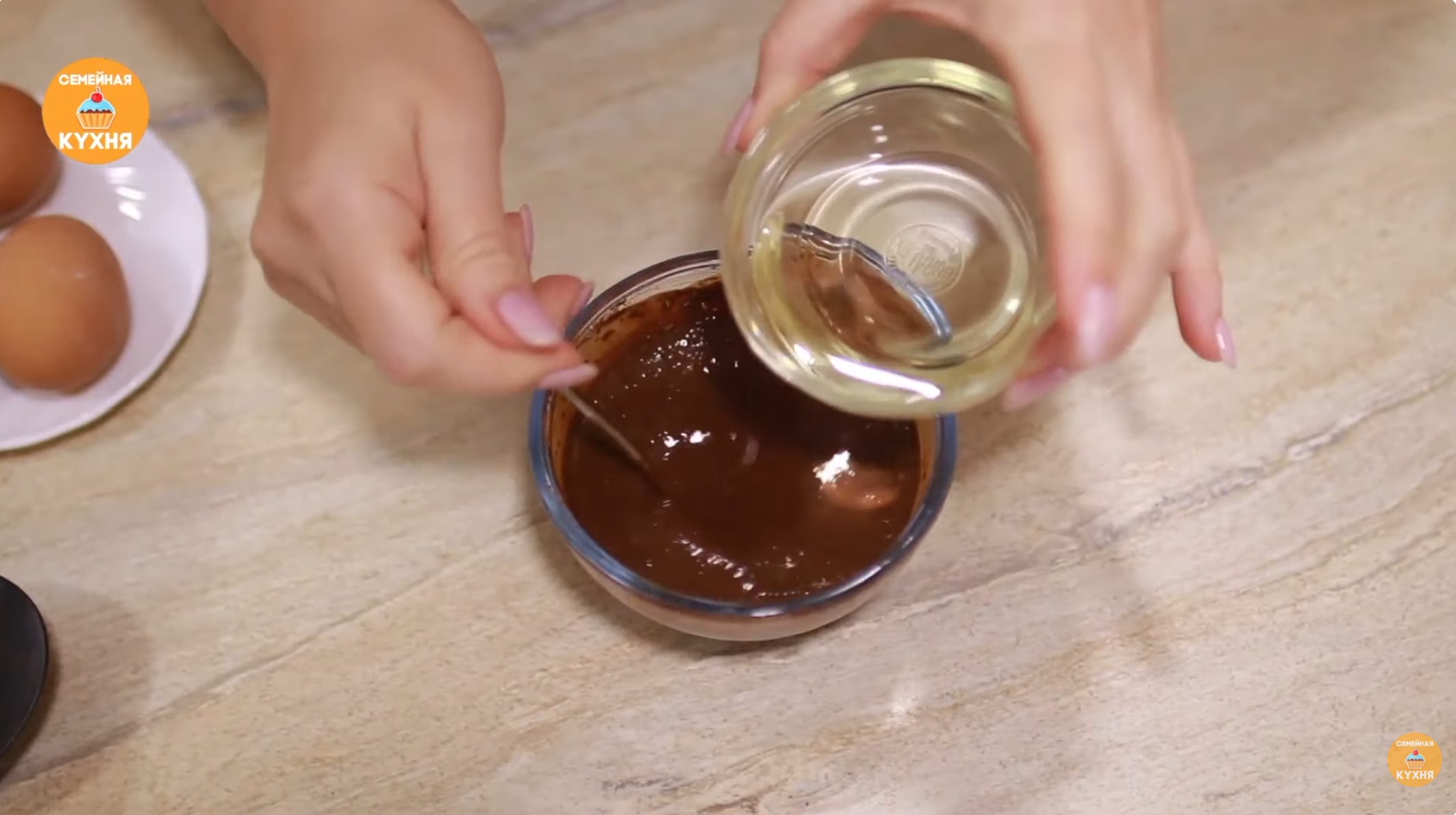 1. В глубокую миску просейте муку, добавьте кукурузный крахмал и разрыхлитель. Тщательно перемешайте и отставьте в сторону. 2. Нагрейте молоко практически до кипения. Всыпьте в него какао-порошок и перемешайте до исчезновения комочков. 3. Влейте в шоколадную смесь растительное масло, размешайте до однородности и дайте остыть.