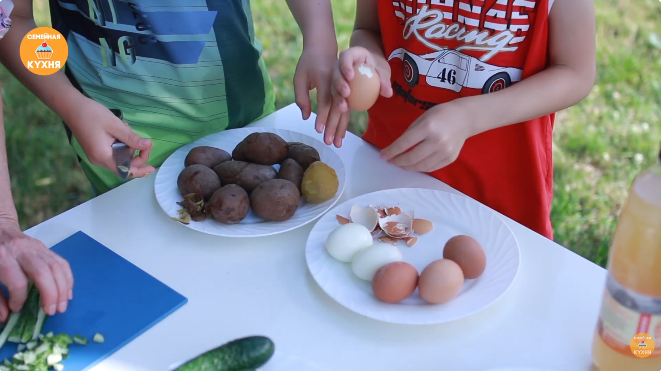 Подготовка продуктов. Заранее отварите мясо, картофель и яйца. Перед началом нарезки овощи, яйца и картофель необходимо почистить.