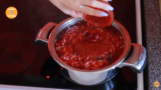 Добавление специй и секретных ингредиентов • Добавьте квашеную капусту — это обязательный ингредиент для придания борщу особого вкуса. • Добавьте томатный соус (или ложку томатной пасты), фасоль, душистый перец горошком и красный перец чили (если любите острое). • Варите овощи недолго: они должны оставаться слегка хрустящими.