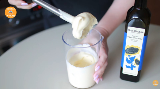 Шаг 2: Приготовление соуса 1. В чашу блендера разбейте одно яйцо, добавьте соль, сахар, 0,5 ч. л. горчицы, немного уксуса и подсолнечное масло. 2. Начинайте взбивать блендером, не поднимая его, пока не образуется эмульсия. Затем плавными движениями вверх-вниз добейтесь густой консистенции. 3. В получившийся густой соус добавьте икру мойвы и острый соус шрирачи (по вкусу для пикантности) и хорошо перемешайте ложкой или лопаткой.