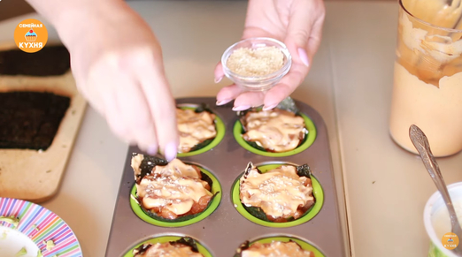 Шаг 4: Сборка суши-маффинов 1. Возьмите квадрат нори. На шершавую сторону выложите 1 ч. л. риса, а сверху — 0,5 ч. л. творожного сыра (например, «Филадельфия»). 2. Поместите нори с рисом в формочку для маффинов, слегка утрамбуйте и размажьте сыр. 3. Добавьте 0,5 ч. л. приготовленного домашнего соуса, затем тонкий слой авокадо,. 4. Сверху выложите 1 ст. л. рыбы и накройте еще 1 ч. л. соуса. 5. Посыпьте заготовку кунжутными семечками.