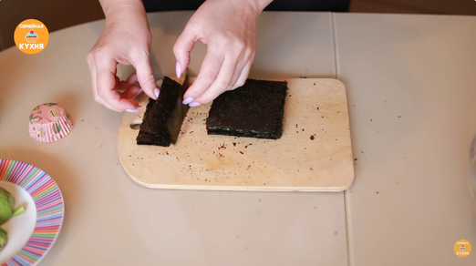 Шаг 3: Подготовка начинки и основы 1. Авокадо: достаньте мякоть ложкой и нарежьте мелким кубиком. 2. Рыба: филе любой красной рыбы нарежьте мелким кубиком, переложите в миску, добавьте немного соевого соуса и перемешайте,. 3. Нори: разрежьте листы нори на четыре части, чтобы получились квадраты.